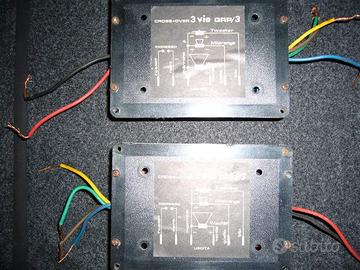 Coppia di Cross Over passivi a 3 vie di tipo passivo marca Answer, ideali per pannello Hi Fi car o per diffusori auto costruiti. Alcuni dati: 3 vie, frequenze tagli a 500 e 10.000 hz, 12 dB/octave, schemi elettrici sul retro (visibile in foto).