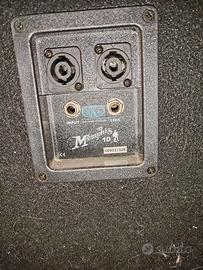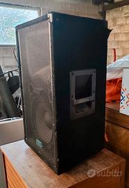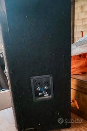 diffusori acustici professionali (PA) da palco o per DJ set. Nello specifico, si tratta del modello Memphis 10 prodotto dalla XXL Inside. È una cassa passiva full-range da 10 pollici, molto popolare tra la fine degli anni '90 e i primi anni 2000 per piccoli eventi o monitoraggio. Descrizione tecnica del pannello • Connessioni Superiori: Due ingressi Speakon (standard professionale). Servono per collegare la cassa a un amplificatore esterno. Sono due perché permettono il "rilancio" del segnale a un'altra cassa. • Connessioni Inferiori: Due ingressi Jack da 6.3mm. Hanno la stessa funzione degli Speakon, ma sono uno standard più vecchio e meno sicuro per le alte potenze. • Struttura: Il rivestimento è in moquette nera.