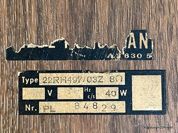 Provengono da Casse Philips 22RH497/03Z (1969–1971) Potenza: 40 Watt/ 8Ω. risposta in frequenza 30 - 20.000 Hz, frequenza di crossover 700 / 3.000 Hz, 8 .