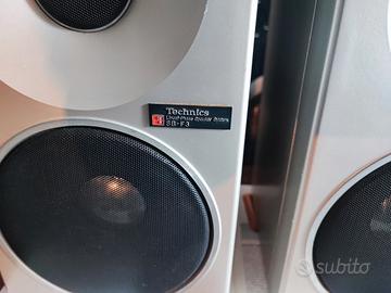 coppia storici diffusori Technics SB-F3 in ottime condizioni estetiche e funzionamento, tweeter a tromba woofer da 15 cm ( uno aveva la sospensione che cominciava a rovinarsi e quindi rifatta una settimana fa ) , uno dei due woofer ha la cupola centrale metallica con dei segni che comunque non ne pregiudicano il corretto funzionamento , la cassa è completamente in alluminio pressofusi e quindi assolutamente esente da vibrazioni , il suono è molto vivace e dettagliato , messe a confronto con diffusori attuali da 700-800 euro certo non sfigurano , anzi , collocare vicino ad una parete hanno anche bassi solidi e abbastanza profondi , il mobile non ha botte ma qualche segno dell'età , si parla di 1976 .Disponibile per ascolto in negozio a Mestre