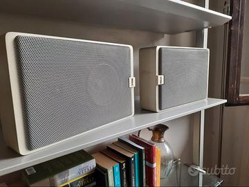 Connettivita' cablata, 4 Ohm 45 watt RMS 70 Max., colore crema con griglie in metallo forato.