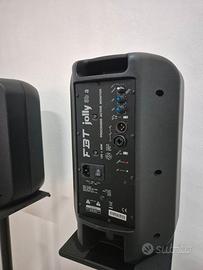 Vendo coppia satelliti FBT JOLLY 8BA in eccellenti condizioni complete di imballi originali. Caratteristiche principali Sistema 2 vie Bass-reflex biamplificato Woofer ceramico da 200mm (8") custom ad alta efficienza ed escursione Driver custom a compressione da 25mm Amplificatori interni da 150Wrms classe G sul woofer e 50Wrms sul driver classe AB Tromba a direttività costante 90°H x 60°V Protezione ADAP (Advance Dynamic Active Protection) che limita la saturazione degli amplificatori Box in polipropilene con maniglia integrata, supporto per stativo, 2 punti di ancoraggio M6 Dimensioni: 255 x H415 x 245mm Peso: 8,1 Kg