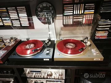 Akai AP-100C – Hi-Fi Vintage con Braccio S-Shape JELCO Prezzi per singoli giradischi Propongo due splendidi esemplari del celebre giradischi Akai AP-100C, un progetto iconico per solidità e precisione. Entrambi i modelli sono stati revisionati e sono perfettamente funzionanti. Il vero punto di forza di questi modelli è il braccio a "S" lungo di derivazione Jelco, noto tra gli appassionati per l'eccezionale capacità di tracciamento e la qualità costruttiva, di gran lunga superiore ai bracci montati sui giradischi moderni di fascia media. I due modelli disponibili: 1. Akai AP-100C - Versione Silver (Grigio) Stato: Condizioni estetiche e meccaniche ottime. Testina/Puntina: Monta una puntina audio technica nuova (suono dettagliato e cristallino). Caratteristiche: Completo di coperchio parapolvere in buone condizioni. Prezzo: 130€ 2. Akai AP-100C - Versione Black (Nero) Stato: Meccanica perfetta, estetica del corpo molto bella. Testina/Puntina: Monta una puntina audio technica con stilo compatibile nuovo Condizioni eccezionali per l' età Prezzo: 160 € Specifiche Tecniche comuni: Sistema: Semiautomatico (ritorno automatico del braccio e spegnimento a fine disco). Trazione: A cinghia (belt drive) con motore sincrono a 4 poli. Braccio: Staticamente bilanciato a S (Originale Jelco). Puntine: Entrambe nuove, appena installate, zero ore di ascolto... Sono di peso e dimensioni importanti non plastica ma derivato del legno I giradischi sono pronti per essere collegati e ascoltati. Un'ottima occasione per chi cerca un componente Hi-Fi serio, durevole e con un braccio di alta qualità. Posso spedire dopo video dimostrativo oppure vieni ad ascoltarlo a casa mia Priorità consegna a mano che secondo me è la cosa migliore Gli altri apparecchi se visibili in foto ( giradischi amplificatore registratore a cassette lettore cd equalizzatore bobine casse ecc) non sono in vendita a meno che non lo trovi nei miei annunci.