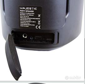 Coppia Majestic Flame 22 Pro, Dotata di woofer da 5,25”, tweeter da 2”, funzione Bass Boost e potenza d’uscita fino a 300W, offre un'esperienza audio travolgente. La batteria ricaricabile al litio da 4000 mAh ti accompagna per ore, anche all’aperto, grazie alla protezione IPX5 contro schizzi d’acqua.
