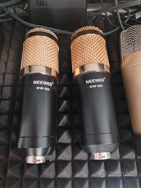 Vendo due microfoni a condensatore identici mod. Neewer 800, usati per registrazioni stereo. Vendo solo i microfoni, non sono inclusi cavi o altri accessori. Funzionano bene, li ho usati con scheda Roland Duo Capture e Scarlett 2i2 MK3 (clone), ottimi risultati per registrazioni stereofoniche. Per le caratteristiche e recensioni vedere online. Il prezzo è per 2 microfoni senza accessori.