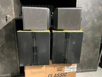 Modello Classic 5, classe A/B, woofer in vetro/aramide da 5"/30W e tweeter 1" a cupola in tessuto acustico impregnato/20W, pressione sonora max 101dB, risposta in frequenza 46Hz-34,5KHz. Limiter integrato che impedisce picchi di potenza pericolosi, controllo volume, equalizzatore alti/bassi separati per il migliore adattamento all'ambiente di utilizzo e genere musicale riprodotto. Ingressi RCA-XLR-TRS 1/4". Cavi di alimentazione e segnale (10m cad) compresi, scatola integra, due cuscinetti in schiuma acustica per isolamento dalle vibrazioni e sagomata per inclinazione ottimale. Cassa in legno nobilitato nero, dimensioni h 246mm x 188mm larghezza x 284mm profondità. Peso c/ca 12 kg (coppia). Acquistati a Settembre 2025 ed usati poche ore.
