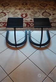 coppia rialzi per casse acustiche in metallo nero come da foto, con base appoggio speakers ricoperta in gomma antiscivolo , nella base pavimento posseggono 3 piedi grossi di gomma che mantengono gli stand stabili e difficili da scivolare sul pavimento. usato in buone condizioni e non piu' utilizzati, ma non come oggetti nuovi. robusti ma poco ingombranti ma raffinati . 35x35 cm di ingombro, altezza 30 cm e base appoggio speakers 22x22 cm ... ok spedizione