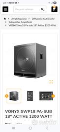 vendo coppia di subwoofer amplificati vonix 1200 watt di potenza di picco usati solo in casa