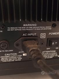 OTTIMO STATO,DIREI UNA DECINA DI ANNI,OTTIMO SUONO MOLTO DOLCE ,POCO AGGRESSIVO ,SCELTO AI TEMPI PER LA NECESSITA DI RIPRODURRE ANCHE MUSICA .VENDO PER PASSAGGIO A SISTEMA SOLO A\V TUTTO KLIPSCH. AD UN SUB MANCA LA PIASTRINA CON LA MARCA