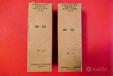 Coppia di valvole JAN 2A3 della "Canadian Marconi Company", costruite in Canada nel febbraio 1945.