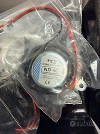 Tweeter, diametro 48 mm, 100 watt nominali, 250 watt max, magnete al neodimio, raffreddamento bobina con ferrofluido, cupola in seta trattata, flangia ad ampio angolo e basso caricamento nominal impedance (Zn): 4 ohm nominal power (Pn): 100 watt max power (Pm): 250 watt sensitivity (2.83 V/1 m): 90 dB frequency range (BW): 2.5÷20 KHz resonance frequency (Fs): 1600 Hz voice coil diameter: 26 mm dome material: silk surround material: - basket material: ABS magnet material: neodymium
