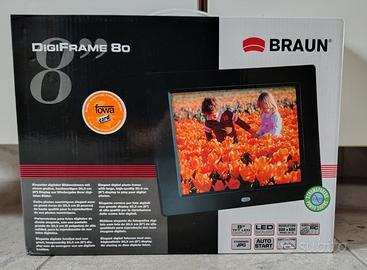 Cornice digitale BRAUN 8 pollici come nuova con alimentatore e telecomando. Memoria-chiavetta USB non inclusa. Possibilità di orientamento orizzontale o verticale.