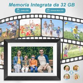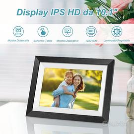 Cornice Digitale Legno Nero WiFi, 10,1" Frameo Portafoto Digitale 32 GB Memoria, Touchscreen IPS HD 1280 * 800, Rotazione Automatica, Condividi Foto/Video Tramite l'app Frameo,