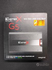 Vendo questo bellissimo SoundblasterX G5, scheda audio portatile e amplificatore per cuffie, adatta sia per gamers che per chi cerca un interfaccia audio piccola, funzionale e allo stesso tempo buona, adatta per qualsiasi cuffia o iems da gaming e/o cuffie da ascolto mediamente esigenti.