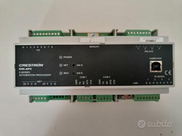Vendesi processore di controllo Crestron DIN-AP2, unità centrale affidabile e versatile per la gestione di sistemi domotici e automazione d'ufficio. Grazie al montaggio su guida DIN standard (9M), è la soluzione perfetta per quadri elettrici ordinati e professionali.