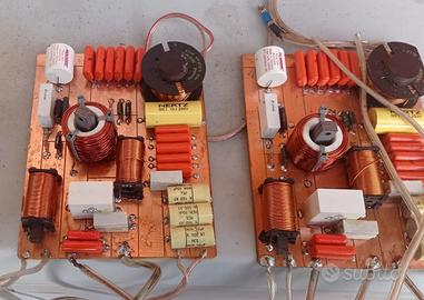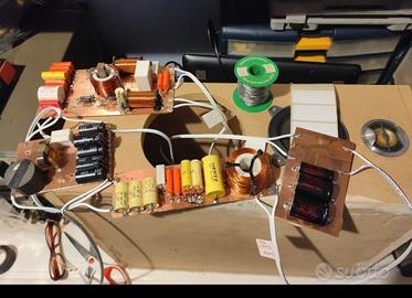 Realizzazione di crossover audio artigianali, due tre quattro vie, per uso home professionale e car, con pendenza a partire da 6 db/ottava 12-18-24 ecc. esperienza ultra trentennale. Prezzi veramente interessanti,per farsi un'idea il costo medio di una coppia a tre vie si aggira dai 140/160 euro, circa 60/70 euro per una coppia a due vie ,e circa 210/220 euro per un 4 vie, per un preventivo piu preciso verranno richiesti 10 euro recuperabili in caso il progetto venga fatto realizzare, non sono crossover pronti ma vengono realizzati su misura a richiesta del committente. si sostituiscono anche le sospensioni di subwoofer, woofer e midrange.