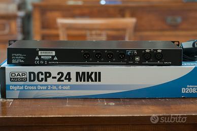DAP DCP-24 MKII è un crossover digitale a 4 canali, adatto per combinazione di altoparlanti sub/top in 4 parti. È dotato di una varietà di funzioni, come equalizzatore a 5 bande, controllo del volume, X-over, inverso, limitatore e ritardo. Ciò consente di ottenere una qualità del suono ottimale in qualsiasi luogo.