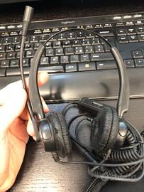 Cuffie da centralinista, stile call-center con numerose regolazioni e impostazioni.
