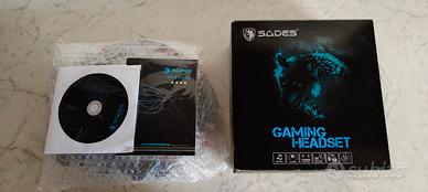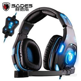 Vendo per inutilizzo cuffia professionale da gaming Sades modello SA907 perfetta per PC ma anche per Consolle,con ingresso USB,audio e microfono da 7.1 Dolby Surround con regolatore del volume luci rgb e cd di istallazione dei driver,cuffia a dir poco spettacolare,suono cristallino e bassi potenti,poggia testa e poggia orecchie in pelle traspirante molto morbidi e comodi per sezioni di gioco prolungate,utilizzata soltanto un paio di volte e riposta nella sua scatola originale e mai piu' utilizzata per mancanza di tempo,perfettamente funzionante ed e' praticamente come nuova ma anche un modello di cuffia molto (Raro) da trovare in queste condizioni.
