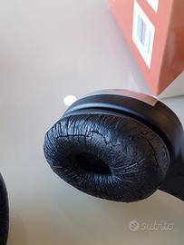 Nuove in confezione originale, Kit n. 2 cuffie audio digitale wireless con trasmettitore Line-In. Spacchettato per controllo funzionamento, tutto perfetto con un ottimo audio. Come da foto piccole crepe sui cuscinetti auricolari, mai usate...Articolo vintage.
