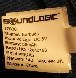 Cuffie auricolari Bluetooth Soundlogic, usati solo per vedere se funzionano. Batteria ricaricabile con cavo micro usb incluso.