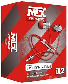 Vendo cuffie auricolari Mtx Audio iX2 di colore rosso.