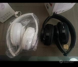 Cuffie wireless B39, cuffie stereo pieghevoli con bassi pesanti, con luci pulsanti colorate, compatibili con Bluetooth 5.0, supporto scheda TF , aux , telefono. Vendo in coppia uno bianco e uno nero . Usate una volta. Cavi inclusi. Vendo causa inutilizzo a 35euro trattabili insieme