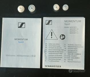 Vendo Cuffie bluetooth in ear Sennheiser Momentum sport con riduzione del rumore, completa di padiglioni auricolari di ricambio di varie dimensioni per adattarle perfettamente al padiglione auricolare. Ottima autonomia con custodia che funge anche da base di ricarica senza alcun bisogno di doverla collegare ad un alimentatore USB (solo dopo 3/4 ricariche degli auricolari, allora la base va ricaricata con il solito cavo USB da collegare ad un alimentatore di qualsiasi telefonino.