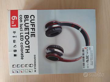 Vendo cuffie bluetooth con luci Led colorate di 6 tipologie, utilizzabili per qualsiasi tipo. tenute in ottime condizioni e presenti di ogni accessorio compreso il caricabatterie. NUOVE MAI USATE