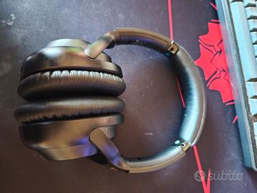Vendo cuffie wireless over-ear Bluetooth con ANC (cancellazione attiva rumore) e microfono, modello generico con design premium nero e logo triangolo arancione. Ottime per musica, gaming, chiamate e ufficio. Caratteristiche: ANC attiva: Riduce rumori esterni per immersione totale Bluetooth 5.0+: Connessione stabile, pairing rapido con smartphone/PC Controlli: Pulsanti + volume (+/-), play/pausa, indicatore LED blu Earcups over-ear: Rivestimento similpelle morbido (L/R marchiati), archetto regolabile/pieghevole Autonomia: 30-40 ore tipiche, ricarica USB-C (coppe opache nere) Suono: Bassi potenti, comode per sessioni lunghe