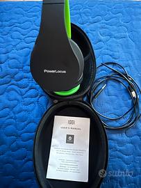 Vendo Cuffie Bluetooth Power Locus nero verde con archetto regolabile, custodia, cavo USB ricarica, cavo Jack 3,5 e istruzioni, usate 2-3 volte pari al nuovo