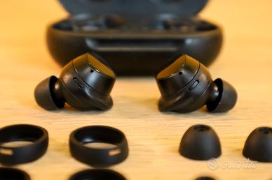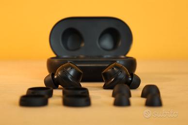 Vendo cuffie Bluetooth Samsung Galaxy Buds, modello del 2019, perfettamente funzionanti e in buone condizioni. Presentano normali segni di usura dovuti all'uso quotidiano. Sono complete di scatola originale e tutti gli accessori inclusi: cavo di ricarica USB-C, archetti in gomma e gommini di diverse misure.