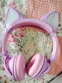 vendo cuffie con filo, lilla e orecchie e luci led. mai usate, con confezione originale