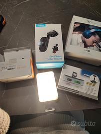Bundle di 4 prodotti con cuffie bluetooth buona qualità marca doqaus, supporto per cuffie come mostrato in foto, bilancia per valigie precisa e compatta, supporto per telefono da utilizzare in macchina con ventosa e con pinza, luce ricaricabile e dimmerabile (per cambiare intensità e colore alla luce che può diventare fredda, media o calda) per aiutare nella creazione di contenuti con il telefono o da usare per video call al computer , i prodotti sono nuovi, nelle confezioni originali e sono stati usati solo per testarne il funzionamento, sono di ottima qualità e funzionali, non vendibili separatamente disponibili per spedizione e ritiro in zona