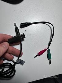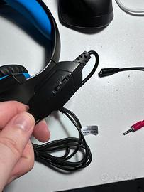 Cuffie da gaming mai usate. tutto si vede in foto, controller per l'audio, microfono che si alza e bassa, ed anche uno split se avete necessità di dividere il jack cuffie da quello microfono