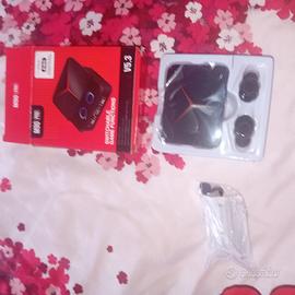cuffie da gaming Bluetooth che si illuminano con colori rosso e blu con scatola,gommini per le orecchie di diverse dimensioni,cavo di ricarica e custodia