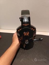 cuffie da gaming nere e arancioni con illuminazione led ai lati