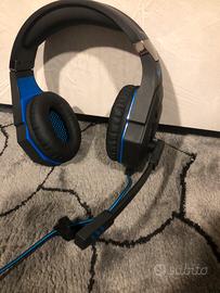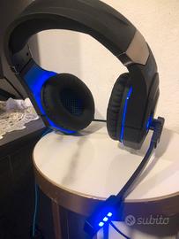 Cuffie da gaming con luci LED blu, microfono integrato e audio stereo di qualità. Perfette per giocare su PC, console o dispositivi mobili. Usate pochissimo, in eccellenti condizioni. Compatibili con la maggior parte dei dispositivi grazie al jack. Vendo per inutilizzo