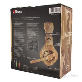 Cuffie da gaming Trust GXT 310D Radius, in ottime condizioni. ✅ Ideali per PS4, PS5, Xbox, PC e laptop ✅ Microfono integrato regolabile ✅ Archetto regolabile per massimo comfort ✅ Padiglioni over-ear con imbottitura morbida ✅ Design Desert camo