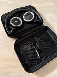 Cuffie dinamiche chiuse, ideali per l'utilizzo con dispositivi portatili. Sono dotate di due cavi smontabili lunghi da 1,2 m con telecomando integrato e microfono, mentre entrambi i dispositivi supportano la compatibilità con iPod o iPhones. Le cuffie sono dotate di meccanismo di piegatura 3D AXIS per un facile trasporto, il design chiuso permette di isolarsi dal rumore ambientale e fornire un ascolto accurato. Il peso leggero e gli ammortizzatori sull'orecchio assicurano una buona vestibilità. Le cuffie offrono unrenge di frequenze compreso tra 11 Hz-29,5 kHz, sensibilità di 126 db SPL / V e impedenza di 32 Ohm. Peso senza cavo: 120 g, nero e argento.