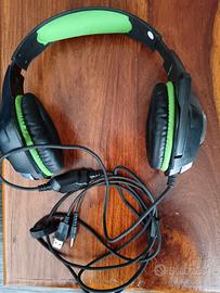 Cuffie gaming con microfono e luci verdi fosforescenti all'utilizzo. Usate poco.