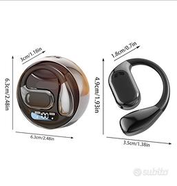 Vestibilità ergonomica e sicura: queste cuffie auricolari a forma di orecchino sono progettate per rimanere saldamente in posizione, anche durante i movimenti più intensi. La struttura leggera ed ergonomica offre una vestibilità stabile e confortevole, prevenendo fastidi o scivolamenti durante l'attività fisica. Batteria a lunga durata e ricarica rapida: grazie alla batteria a lunga durata, questi auricolari aperti offrono ore di musica, chiamate o intrattenimento audio ininterrotti.