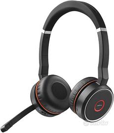 Jabra Evolve 75 cuffie bluetooth con cancellazione del rumore, microfono e batteria con ancora una buona durata. Usate poco, con cavetto per ricarica e dongle bluetooth, con confezione originale