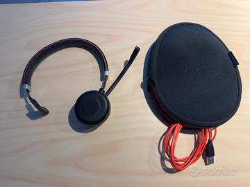Cuffie Jabra mono per meeting, completo di custodia, cavo e dongle USB.