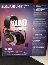 Vendo cuffie da gaming JBL Quantum 810. Cuffie nuove, causa vendita: errato acquisto. Completamente personalizzabili con software JBL Quantum engine. Il suono è sopravvivenza: con driver ad alta risoluzione, cancellazione attiva del rumore, wireless a 2,4 GHz e Bluetooth 5.2, le Quantum 810 ti offrono un audio di alta qualità per ogni tua sfida Con il JBL QuantumSURROUND (su PC) e la tecnologia DTS Headphone:X versione 2.0, ti sembrerà di entrare direttamente nel gioco e potrai sperimentare un audio 3D multicanale immersivo e avvolgente Sentirai sempre un suono forte e chiaro con JBL Quantum 810 Wireless grazie al microfono a braccio direzionale con messa a fuoco vocale, disattivazione dell'audio ed eliminazione dell’eco Lunga autonomia e comfort: con 30 ore di autonomia, un archetto leggero e resistente e cuscinetti auricolari in memory foam rivestiti in pelle di qualità, puoi giocare senza sosta in totale comfort Articolo consegnato: 1 x JBL Quantum 810, Cuffie Gaming Wireless, Cavo Ricarica USB, Cavo Audio 3,5 mm, Dongle USB Senza Fili, compatibili con PC, Mac, PS, Switch, Xbox, Dispositivi mobili e VR
