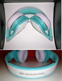 Cuffie Monsters DNA usate e ottimamente conservate. Ottimo l'audio (usate poco ma comunque rodate), i cuscinetti/paraorecchie sono stati sostituiti e messi nuovi di color bianco "sporco" tendente al grigio (il color turchese di origine, come quello in foto sulla scatola, mi è stato impossibile reperirlo). Dispongono di scatola originale, borsa logata Monster nuova/mai usata, un cavo originale Monster nuovo/mai usato e un cavo originale Monster usato da 130 cm che non funge da alza/abbassa volume. Colore bianco/turchese (nell'ultima foto sono anche visibili i cuscinetti che sono stati sostituiti). Preferibile il ritiro in negozio, per eventuale spedizione, o informazioni in merito, possibile contatto telefonico al 3496282557.