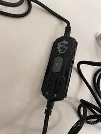 Cuffie MSI Immerse GH50 Gaming Over Ear 7.1 con Illuminazione RGB, Controller Volume su Cavo, Attacco USB, Driver 40mm con Sistema di Vibraizone, Microfono Removibile, Design Piegevole ed Ergonomico
