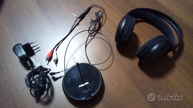 Sono cuffie HiFi, la cui base si collega ad un dispositivo (tv, radio, pc, etc..) con connettori rca oppure jack, e trasmette il segnale alle cuffie wireless che funzionano a batterie ricaricabili.