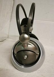 PHILIPS SBC HC8412 CUFFIE WIRELESS E stazione base. Cuffie e stazione base wireless Phillips SBC HC 8412. Funzionanti e con un suono eccezionale, molto più comode di quelle degli auricolari! Due metodi di ingresso audio: cavi fono o semplicemente un cavo ausiliario a una presa per cuffie su un telefono, ad esempio . Si caricano quando sono posizionati sulla stazione base, a volte hanno bisogno di un movimento per garantire un buon contatto e per accendere la luce di ricarica. Sintonizzati tramite il controllo sull'orecchio sinistro e on/off e volume sull'orecchio destro. Da una casa senza fumo e animali domestici.