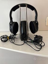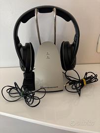 Cuffie wireless ottima marca Sennheiser, mai usate in confezione originale. Riproduzione del suono chiara e dettagliata con bassi potenti. Ideale per musica e tv. Senza fili con ampia ricezione. Controllo volume e sintonizzazione sulle cuffie. Trasmettitore, base di carica e supporto di appoggio. Misure scatola cm. 30,5 x 21x14. Peso gr. 927.